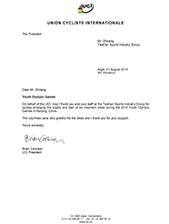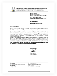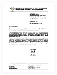 國際體聯主席渡邊守城及組委會主席阿里發來感謝信