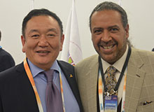 國際自盟主席拉帕蒂安與泰山體育董事長卞青峰親切合影