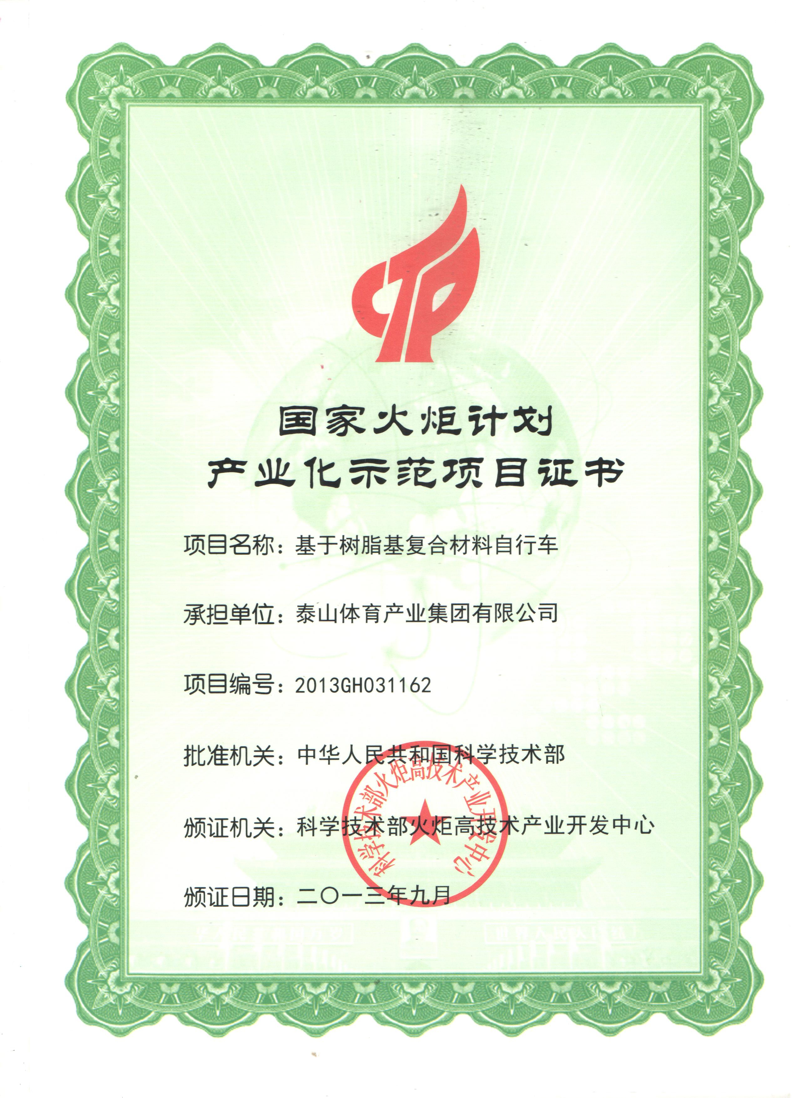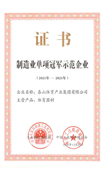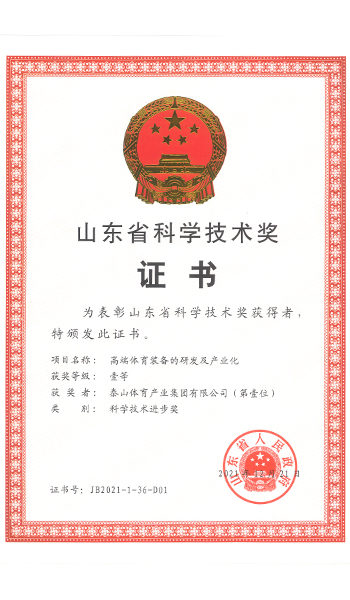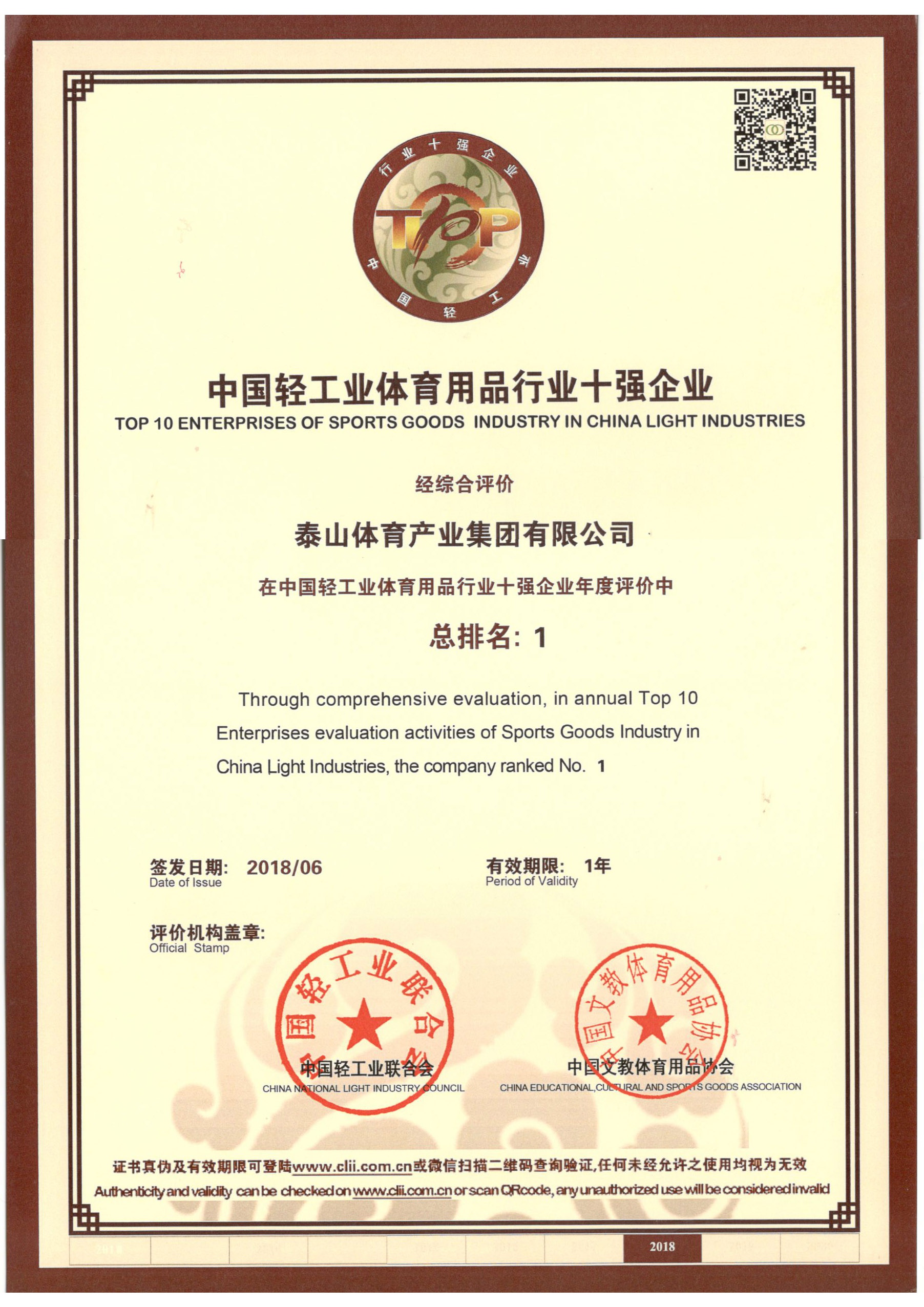 泰山集團是全國體育用品標準化技術委員會副主任單位、中國文教體育用品協會健身和體育器材專委會主任單位、全國輕工行業先進集體、全國群眾體育先進單位、國家制造業單項冠軍示范企業、國家體育產業示范單位,連續多年榮獲中國輕工業體育用品行業十強。擁有多個國家級研發平臺,承擔國家科技支撐計劃2個,火炬計劃3個。