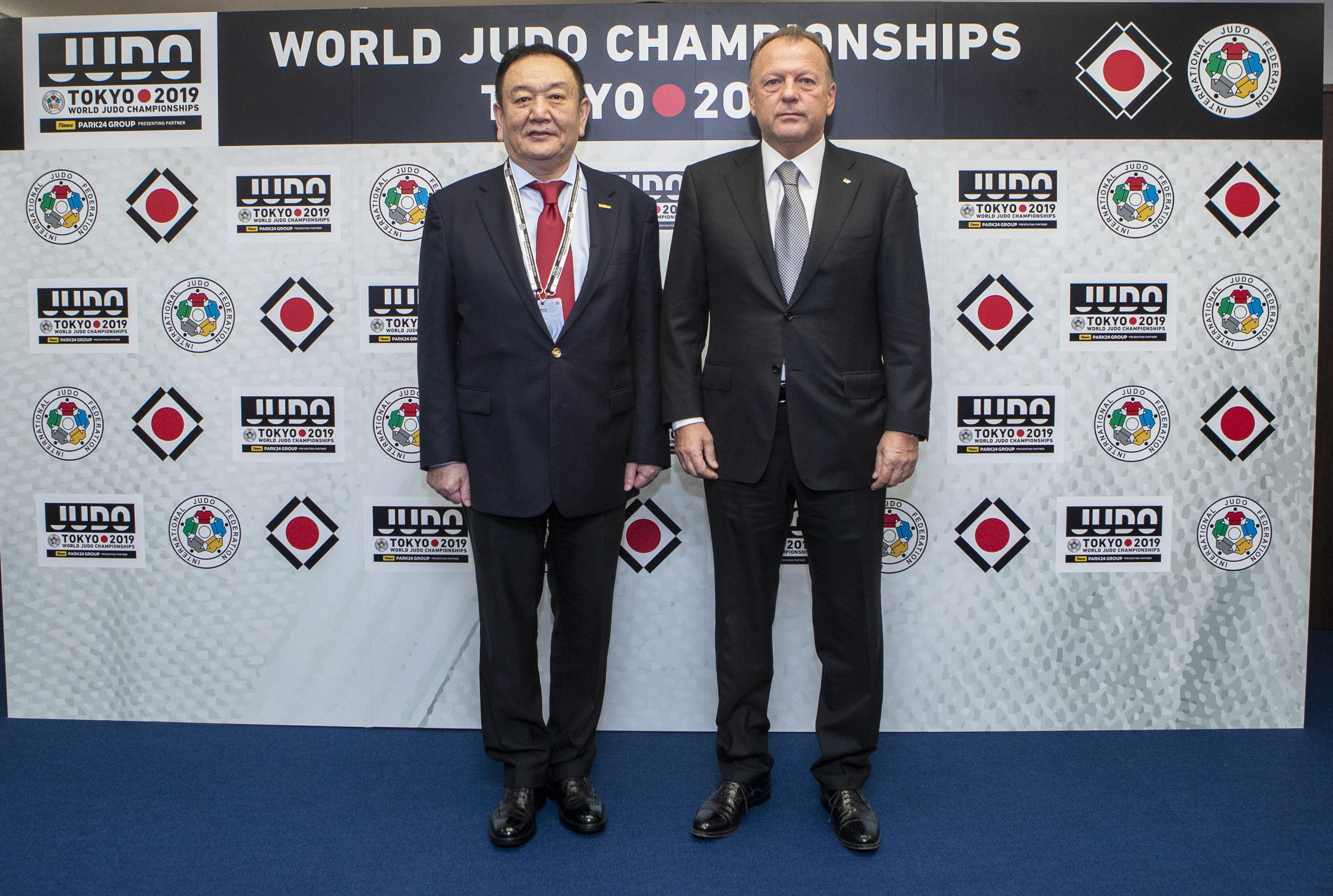 8月23日,在2019年世界柔道錦標賽開賽前,國際柔道聯合會在日本東京舉行慶典活動,紀念柔道運動作為奧林匹克運動項目55周年這一歷史時刻。儀式上,國際柔道聯合會將近60年來為世界柔道運動做出貢獻的運動員與組織機構頒發獎項。泰山體育產業集團作為國際柔道聯合會頂級合作伙伴受邀出席,董事長卞志良作為特邀嘉賓為倫敦奧運會最佳男運動員Mr. Teddy Riner,倫敦奧運會最佳女運動員Mrs. Lucie Decosse 頒獎。