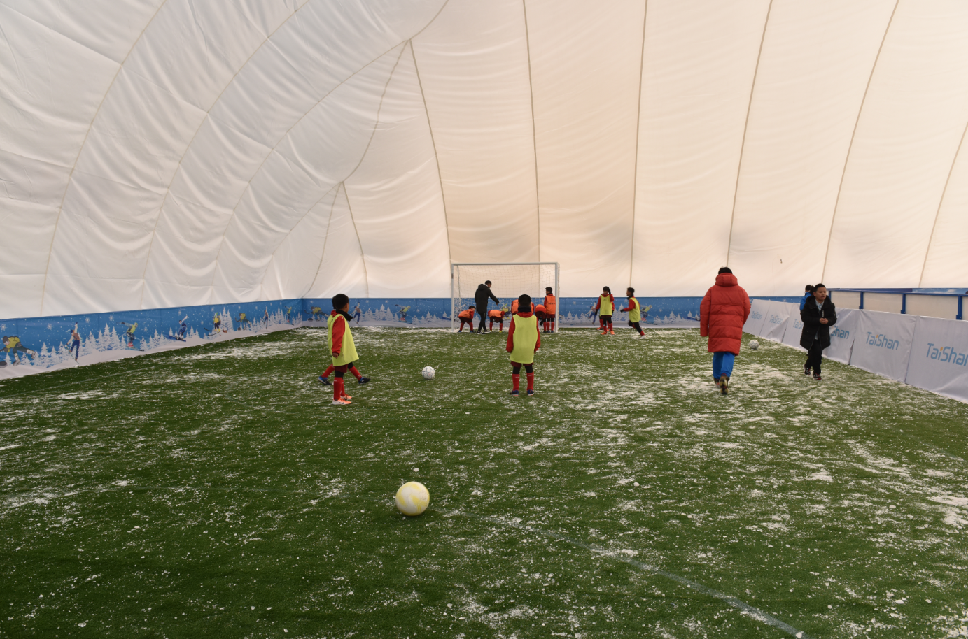 目前,河北省首屆冰雪運動會已完成越野滑雪、速度滑冰、冰球3項賽事。未來三天在河北奧體中心將舉辦速度輪滑、陸地冰壺、滑輪3個項目比賽。值得一提的是,泰山體育科技冰雪器材逐一亮相于本屆冰雪運動會,氣膜建筑+真冰+仿真冰+雪地足球等多種形式的冰雪場館更是讓人眼前一亮,這也成為冰雪運動全民化、趣味化、社區賽事化的強力硬件保障。