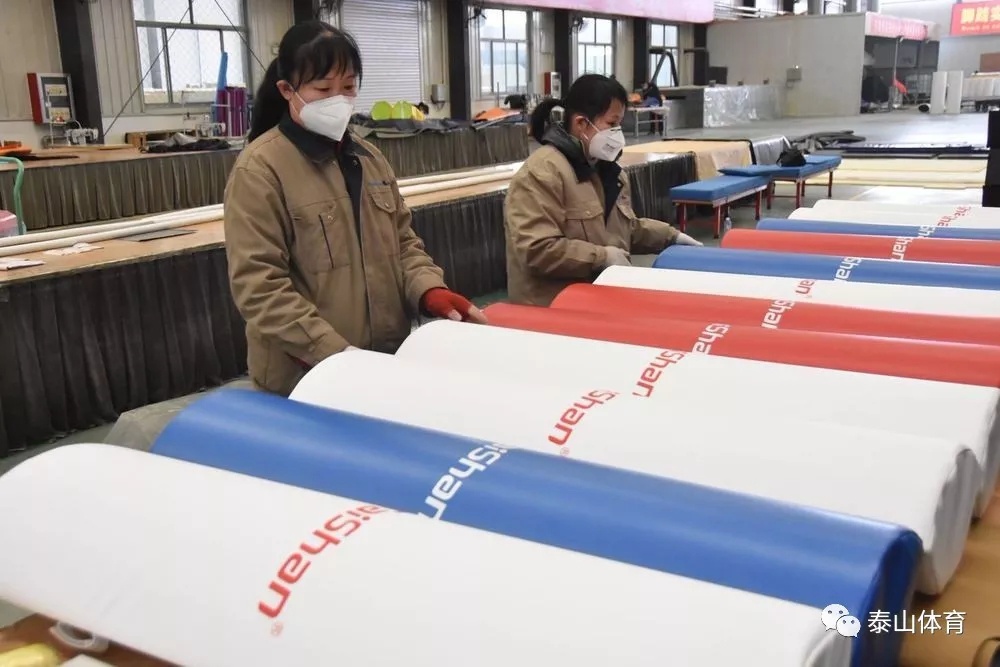 “既然無法轉運,我們就重新生產(chǎn)全部的器材和裝備!”泰山體育產(chǎn)業(yè)集團董事長卞志良經(jīng)過周密研究與部署,在向當?shù)攸h委政府匯報后決定:為了國家榮譽也要拼,那就是“科學防疫,提前復工”。大年初二,泰山集團研究制定了周密的疫情防控方案和生產(chǎn)流程,緊急集合抽調本地職工,分工序錯時加班生產(chǎn),最大限度減少人員聚集,在保證生產(chǎn)效率的同時,確保職工防護安全。