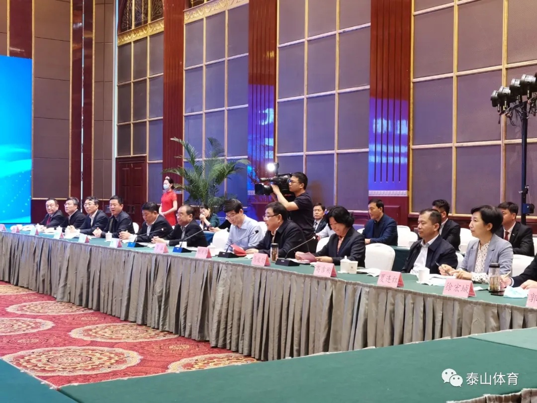 在會前交流中,卞志良董事長感謝農業銀行和各級市委政府領導、社會各界一直以來對泰山集團的大力支持。他指出,泰山集團作為體育與健康產業的領航企業,已經到了高速度、高質量發展的爆發期。省委、省政府賦予打造泰山集團千億龍頭企業,落地萬億產業集群的光榮使命,既是對泰山的信任,也是對泰山的重托。目前泰山集團打造千億級企業各項工作穩步推進,各項經濟指標持續向好。泰山一定不辱使命,努力實現泰山集團千億發展目標,助力山東、德州體育健康產業高速發展。
