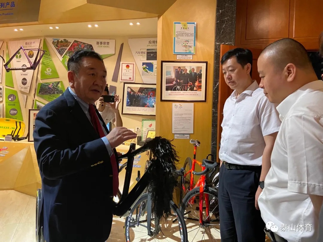 同日,菏澤市體育局局長史長華,第十三屆全國政協(xié)教科衛(wèi)體委員會委員、宋江武校校長樊慶彬一行蒞臨泰山集團調(diào)研指導(dǎo)。在調(diào)研過程中,史長華局長對泰山集團在黨組織建設(shè)、競技體育器材、人造草坪、碳纖維自行車、醫(yī)養(yǎng)健康、冰雪裝備以及在科技創(chuàng)新、體醫(yī)融合、新舊動能轉(zhuǎn)換等方面的工作給予了高度評價,雙方針對市場開發(fā)、項目合作等事宜達成初步共識。