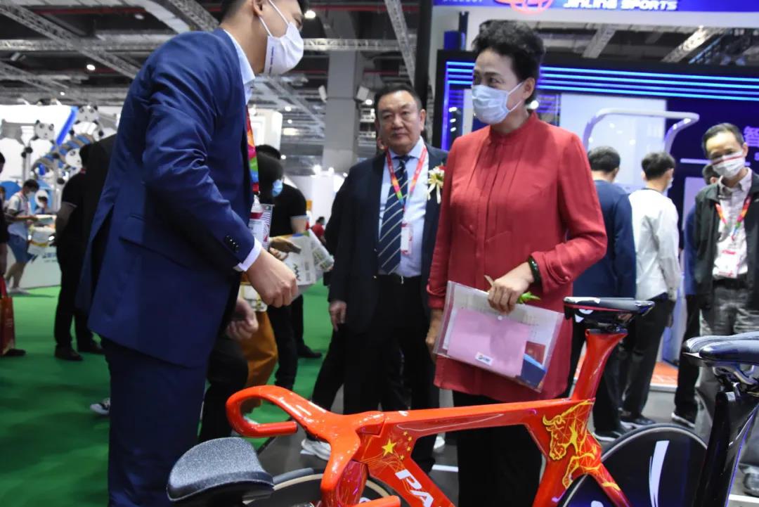 展期內(nèi),領(lǐng)導(dǎo)、嘉賓蒞臨參觀泰山體育展廳,體驗(yàn)產(chǎn)品、指導(dǎo)工作,對展廳內(nèi)的高端裝備和智慧健身生態(tài)產(chǎn)品表示肯定。