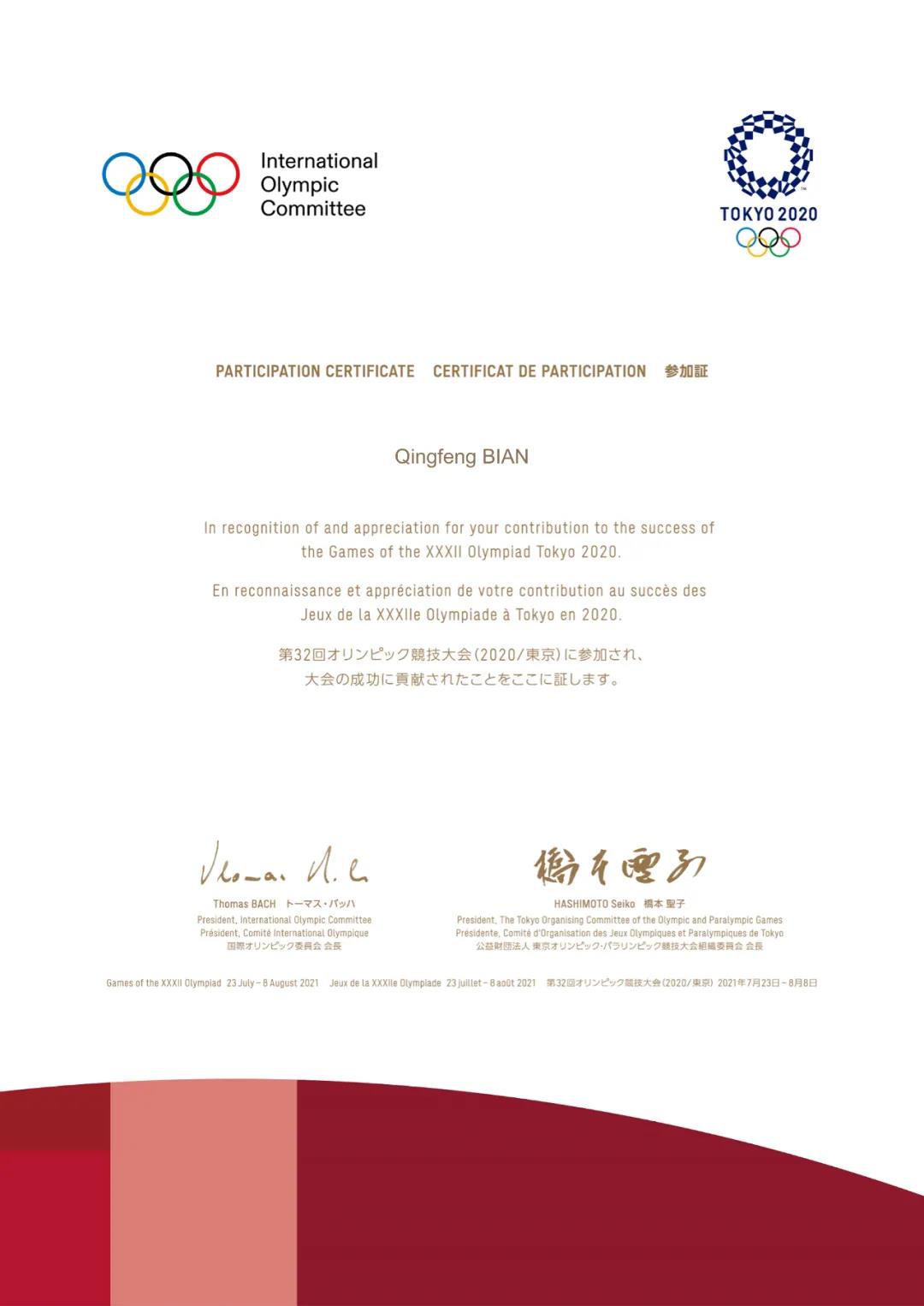 2020東京奧運會組委會給泰山體育的感謝信