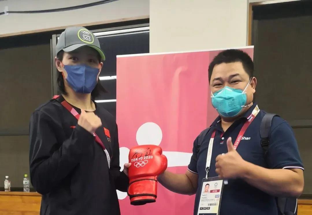 東京奧運會女子拳擊69公斤級銀牌獲得者——中國運動員谷紅簽名泰山體育拳擊手套