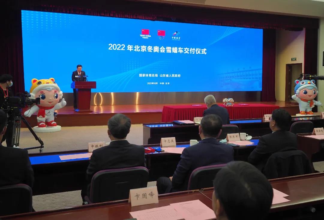 2021年10月27日,距北京冬奧會倒計(jì)時(shí)100天,“2022北京冬奧會和冬殘奧會雪蠟車交付儀式”在北京舉行,國產(chǎn)雪蠟車正式亮相并由山東省政府交付國家體育總局。