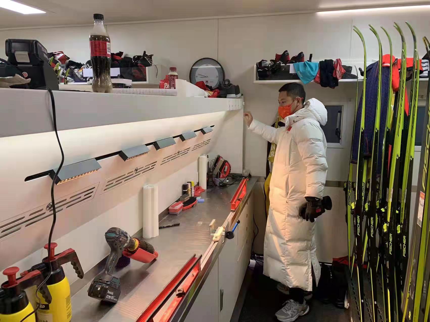 1月23日,中國越野滑雪國家隊運動員抵達崇禮,投入賽前訓練。2月5日,冬奧會開賽第一天,越野滑雪國家隊打蠟師登車開始一天的工作。每天他們在中國蠟車內為每位運動員的滑雪板打蠟后,前往熱身區測試。冬奧會的短短十七天里,雪蠟車服務保障團隊成員,高標準嚴要求,為奧運賽事提供了世界級的保障支持。他們24小時隨時待命,提供專業優質服務。