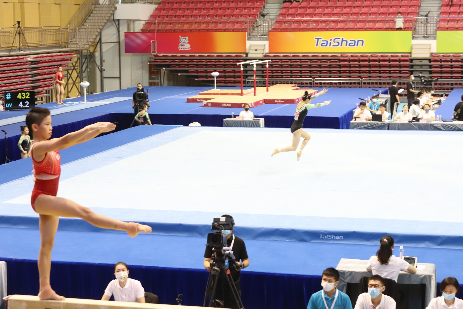 女子團體賽設置自由體操、高低杠、平衡木、跳 馬四個項目,其中女子U15共有浙江、湖北、山東等七支代表隊參賽;女子U14共有山西、四川、廣西等15支代表隊參賽。選手經過熱身、場地練習后,依次上場比賽。