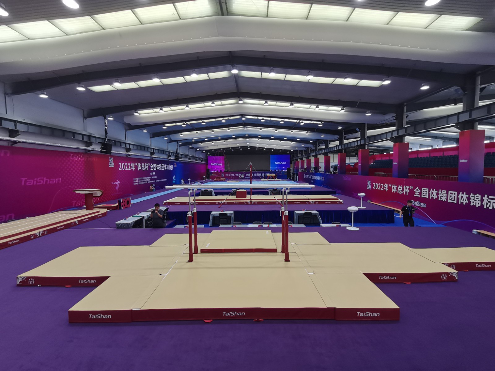 作為賽事承辦方,泰山體育協(xié)同賽事組委會全力籌辦各項(xiàng)工作,高標(biāo)準(zhǔn)打造比賽場館、訓(xùn)練場館,并提供高端體育裝備。比賽場地總共分為4個(gè)區(qū)域,將在這里進(jìn)行跳馬、吊環(huán)以及自由操等7個(gè)比賽項(xiàng)目。北面組委會專門搭建了能承載300人的看臺。在遵守疫情防控的前提下,大賽組委會將在比賽期間邀請部分市民代表中小學(xué)生以及體育愛好者來到比賽現(xiàn)場,近距離感受國家級體育賽事的魅力。