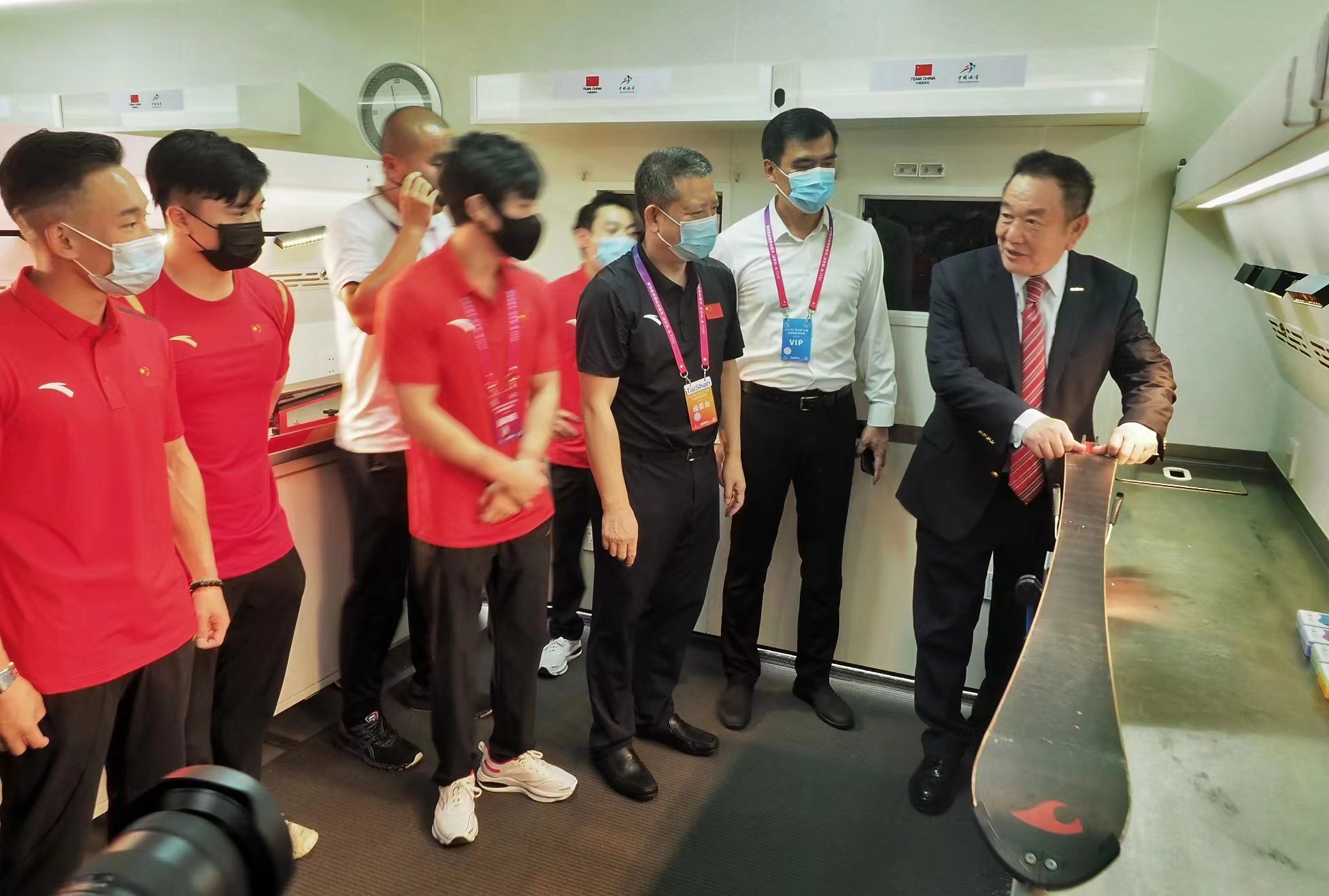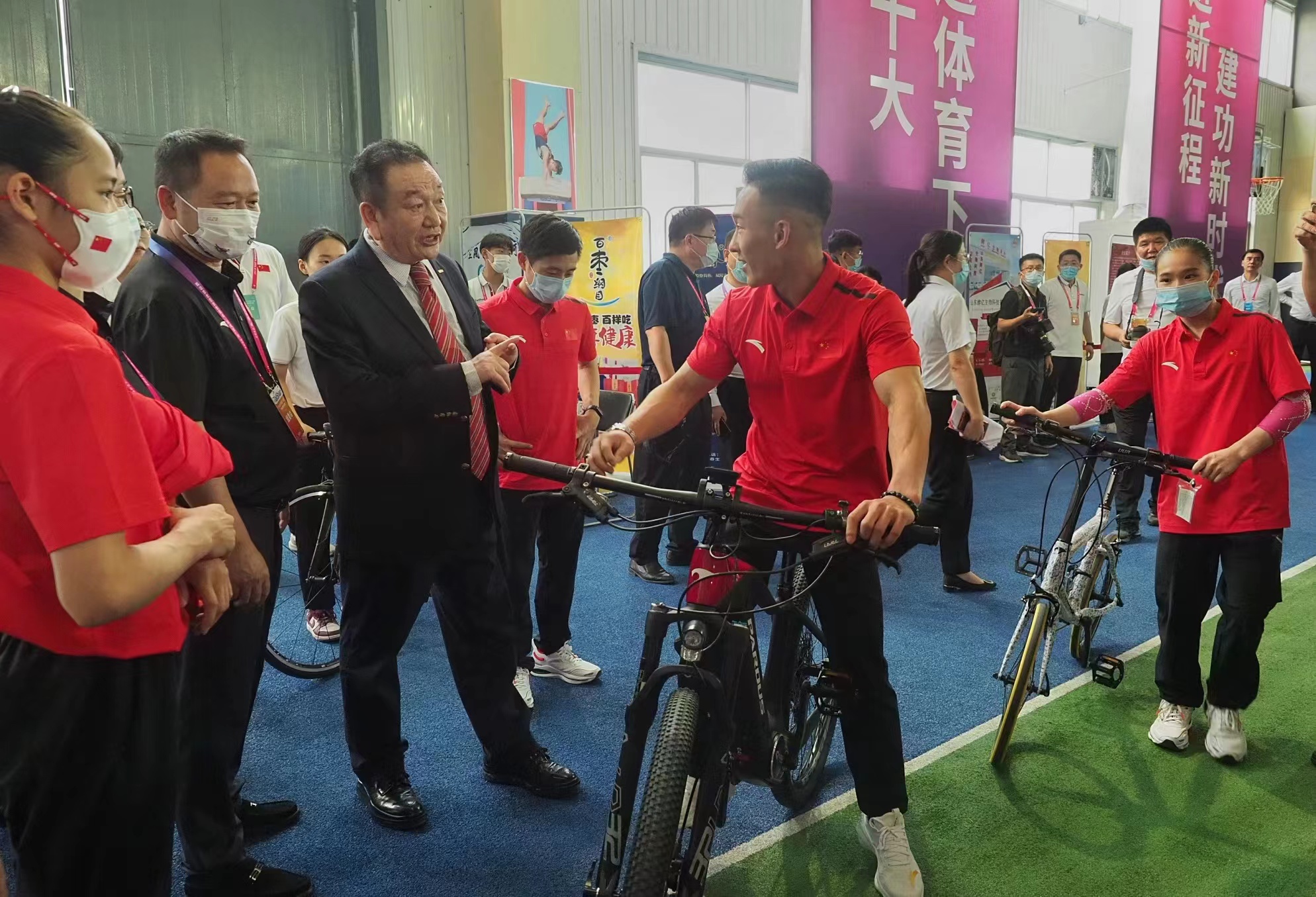 泰山瑞豹碳纖維自行車就是泰山體育立足科技創(chuàng)新、制定國際國內(nèi)標(biāo)準(zhǔn)的代表產(chǎn)品。步入博物館體驗館區(qū),一排閃耀著科技感、未來感的自行車吸引了眾人的目光。泰山瑞豹是中國國家自行車隊(公路、場地中長組)、中國國家鐵人三項隊器材供應(yīng)商,2016年里約奧運會上成為首個登上奧運會自行車項目舞臺的首個自主品牌,打破了歐美國家在這一領(lǐng)域的百年壟斷。產(chǎn)品曾榮獲“中國優(yōu)秀工業(yè)設(shè)計金獎”、IF國際設(shè)計大獎等。運動員們親自上陣,體驗自行車的高性能。