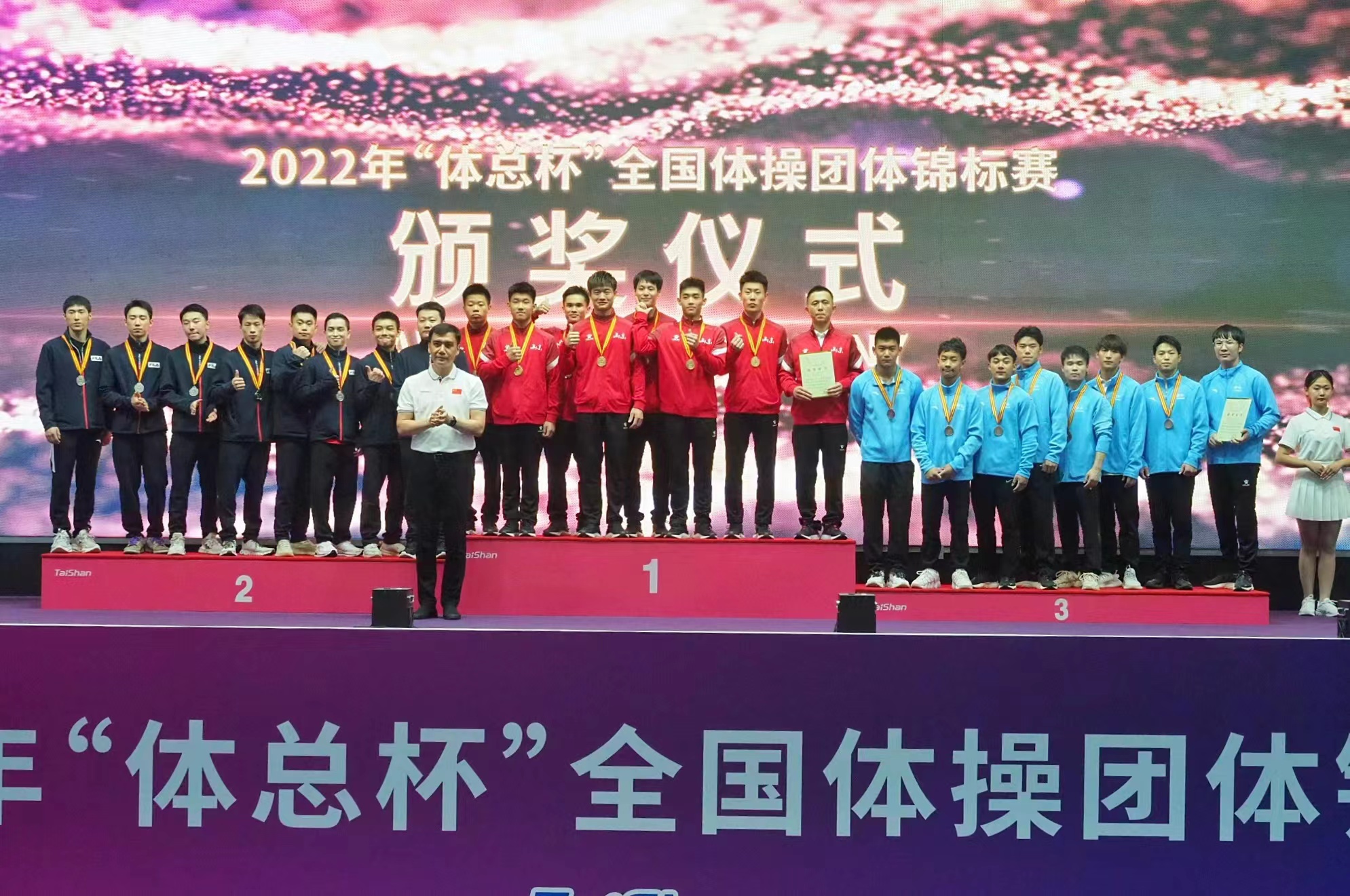 山東體操隊(duì)獲得冠軍,江蘇體操隊(duì)獲得亞軍,云南體操隊(duì)獲得季軍。