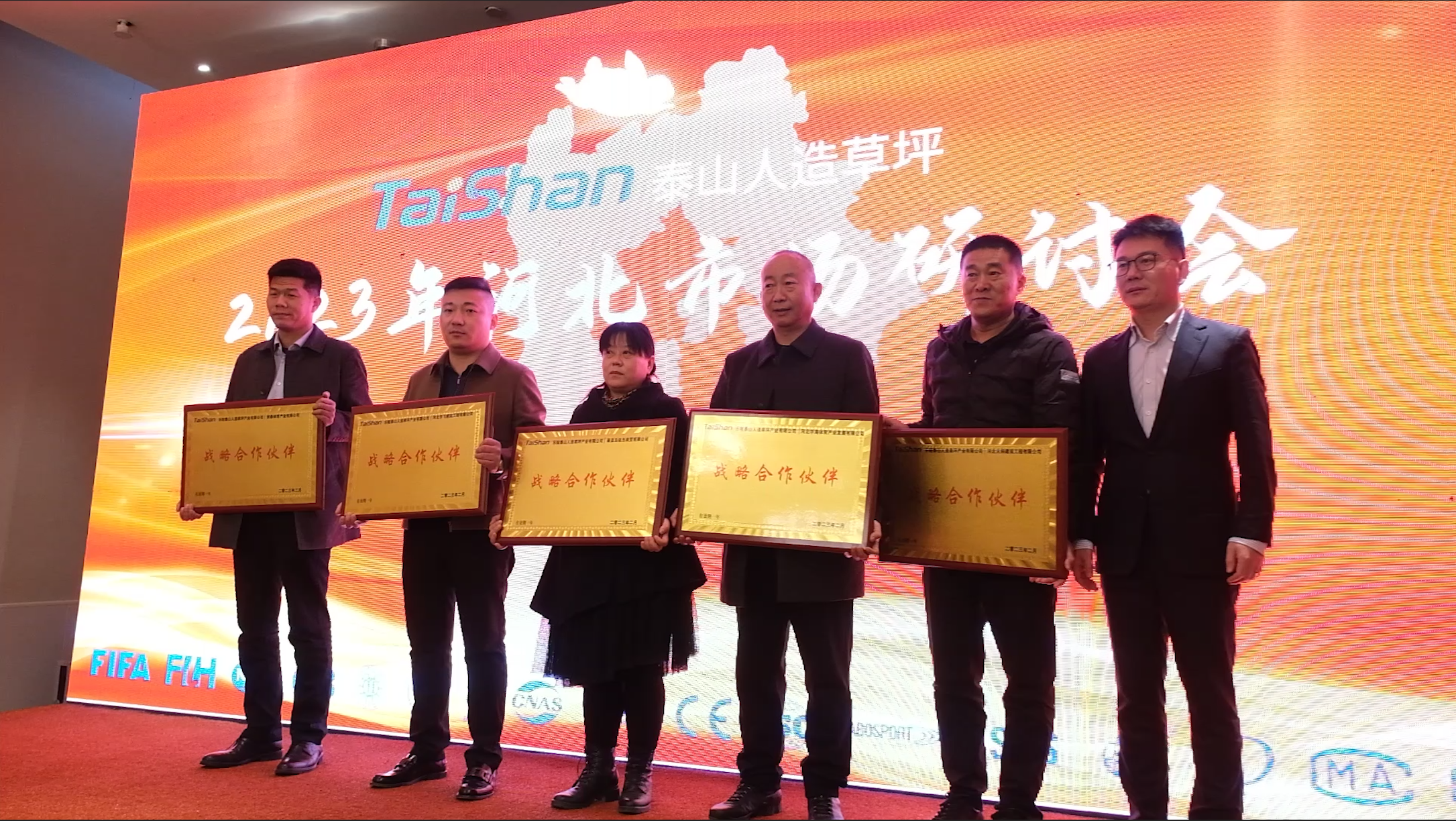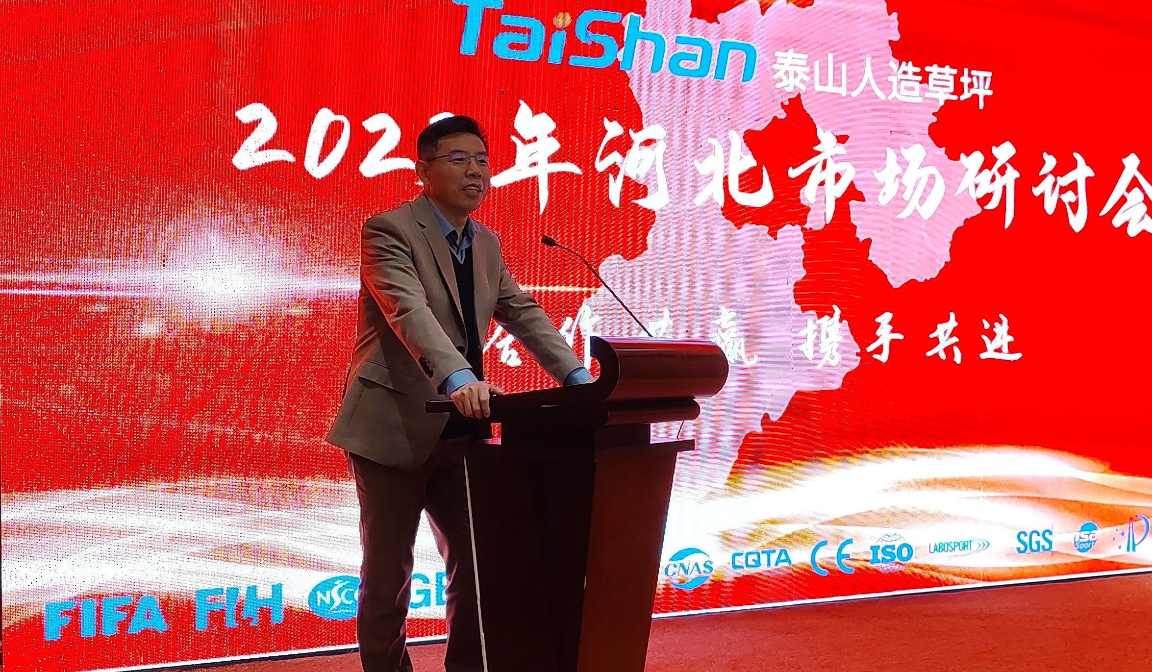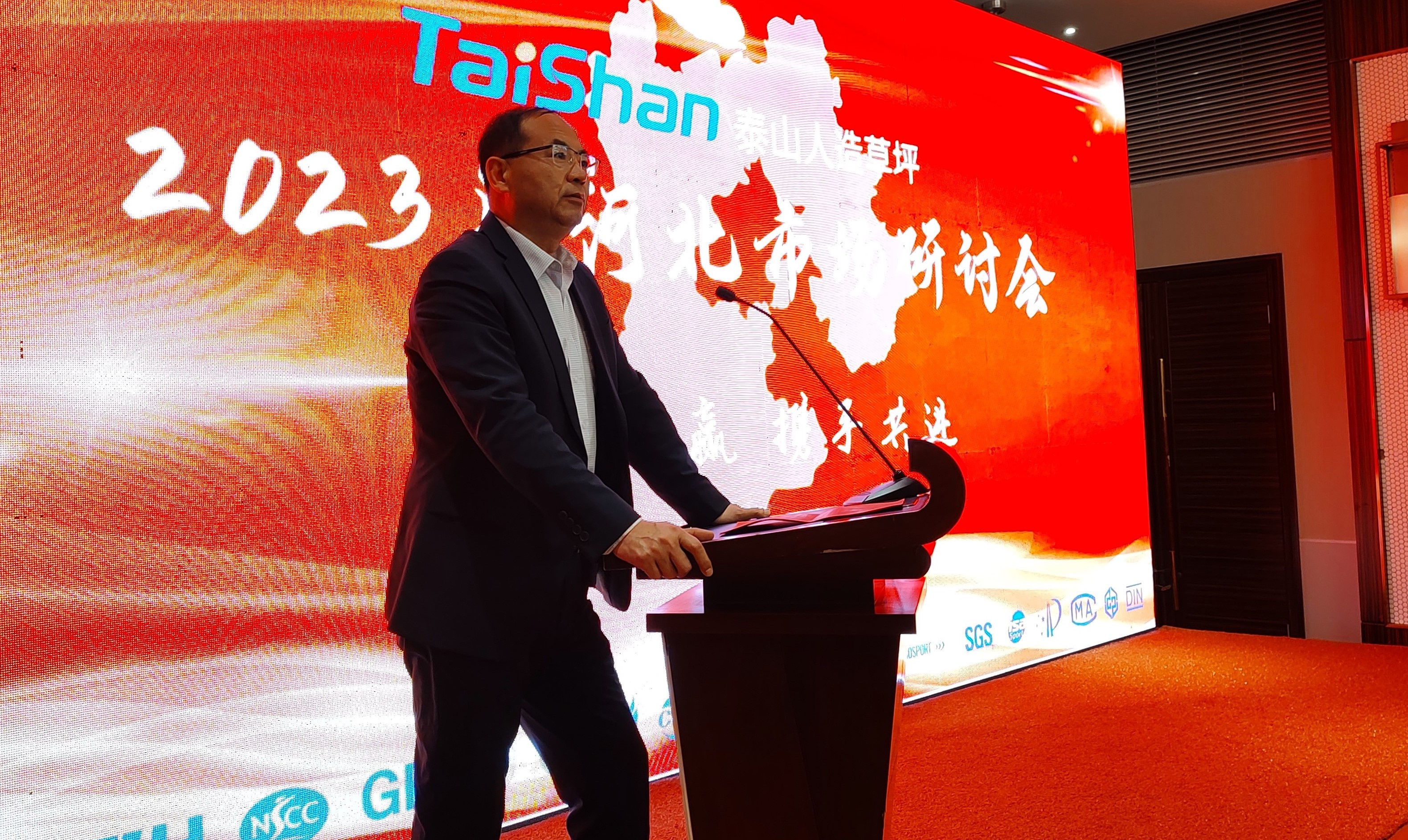 2023年2月10日,為明確2023年度市場戰(zhàn)略部署,與合作伙伴共謀發(fā)展,泰山人造草坪2023年河北市場研討會在山東省樂陵市舉辦。泰山體育產(chǎn)業(yè)集團董事長卞青峰,泰山體育產(chǎn)業(yè)集團總裁卞笑男,樂陵泰山人造草坪產(chǎn)業(yè)有限公司總經(jīng)理時延虎,中國體育用品檢測中心檢驗部主任劉洋及優(yōu)質客戶代表等出席此次活動。