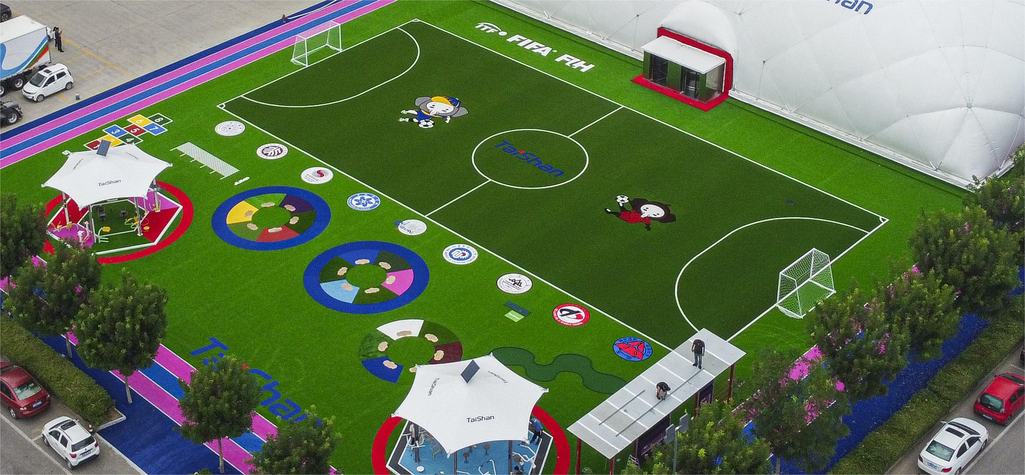整個(gè)頂目建筑,根據(jù)不同分區(qū)的用戶需求和體驗(yàn),在場(chǎng)地鋪設(shè)上,均采用泰山新材料功能人造草鋪設(shè),例如健身步道搭配鋪設(shè)負(fù)離子草、跑道草,休閑景觀草等,不同運(yùn)動(dòng)場(chǎng)地鋪設(shè)籃球草、網(wǎng)球草、羽毛球草等,在兒童落戲區(qū)鋪設(shè)兒童運(yùn)動(dòng)草、卡通圖案草、搭設(shè)茅草屋等,全方位保證運(yùn)動(dòng)安全和環(huán)保。從場(chǎng)館到售賣用房再到公共衛(wèi)生間等,全部采用可裝配式建筑,整體裝配化率不低于80%,依托物聯(lián)網(wǎng)+互聯(lián)網(wǎng)和5G技術(shù),充分發(fā)揮城市運(yùn)動(dòng)中心新型體育服務(wù)綜合體職能,為運(yùn)動(dòng)人群提供更多科學(xué)健身指導(dǎo),實(shí)現(xiàn)綠色低碳高質(zhì)量發(fā)展。
